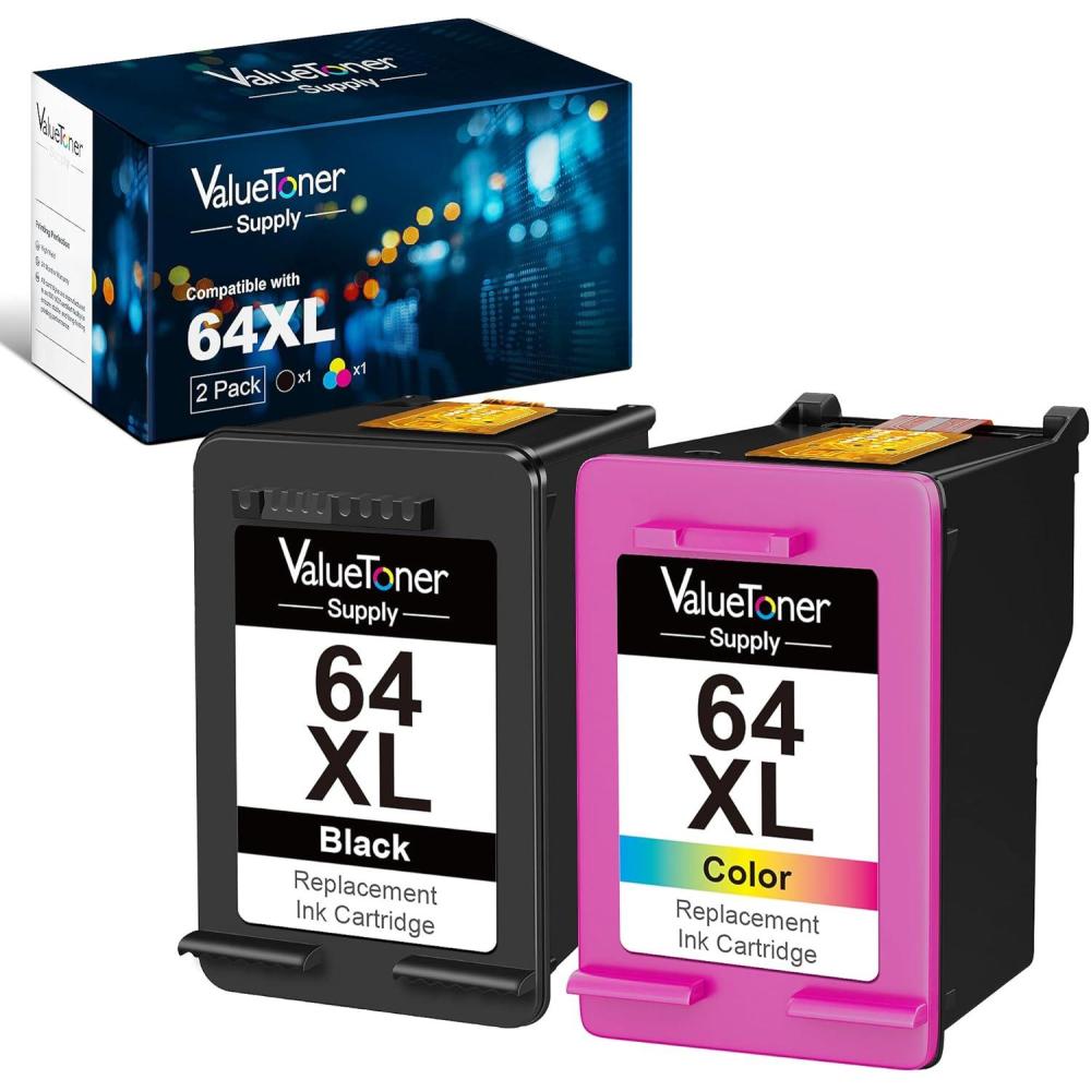 Package contents: 2 Black of Remanufactured Ink cartridges Replacement for HP 64XL 64 XL, equipped with an upgraded intelligent chip and qualified quality control, ensure high compatibility with your printer.