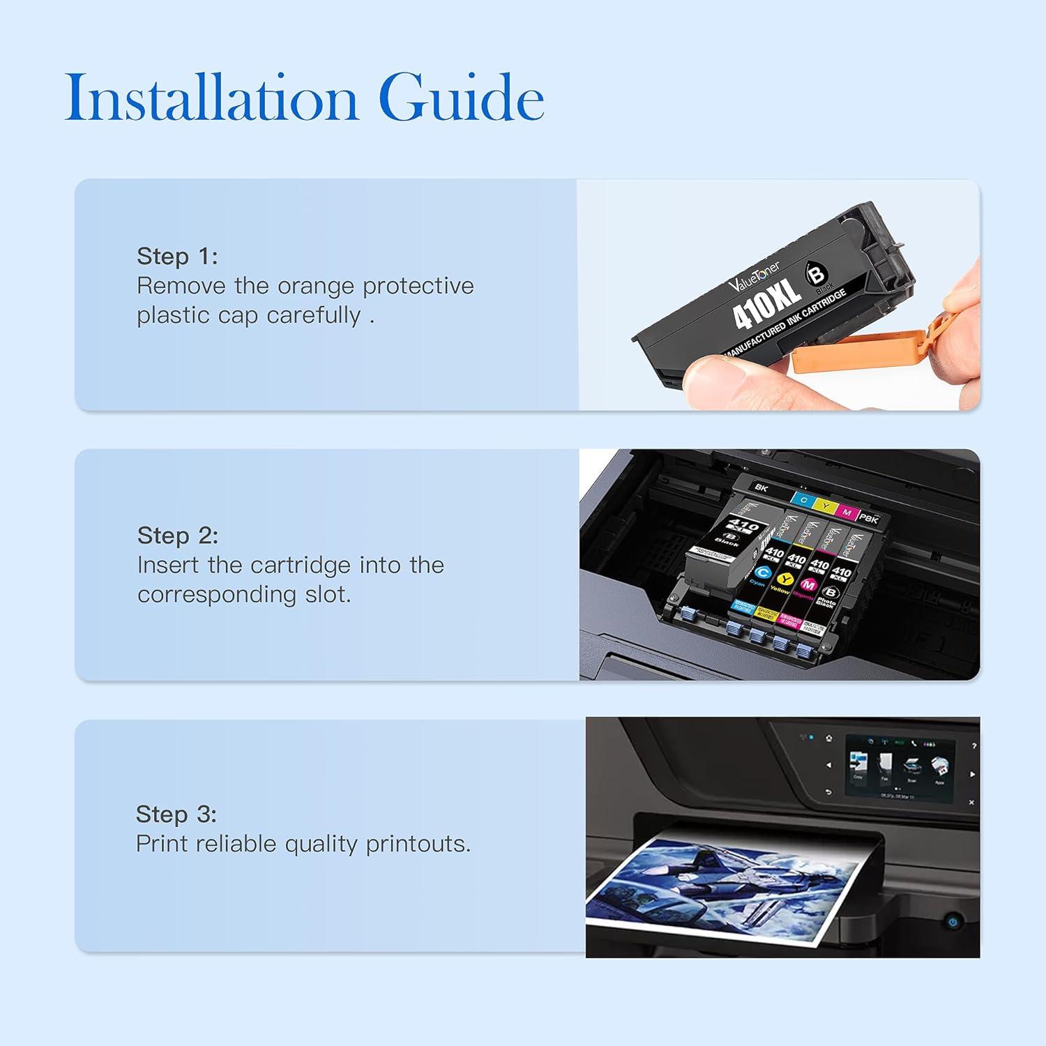 Each Valuetoner 410xl ink cartridge for epson 410xl black undergoes a strict quality testing procedure to ensure quality and compatibility with your printer