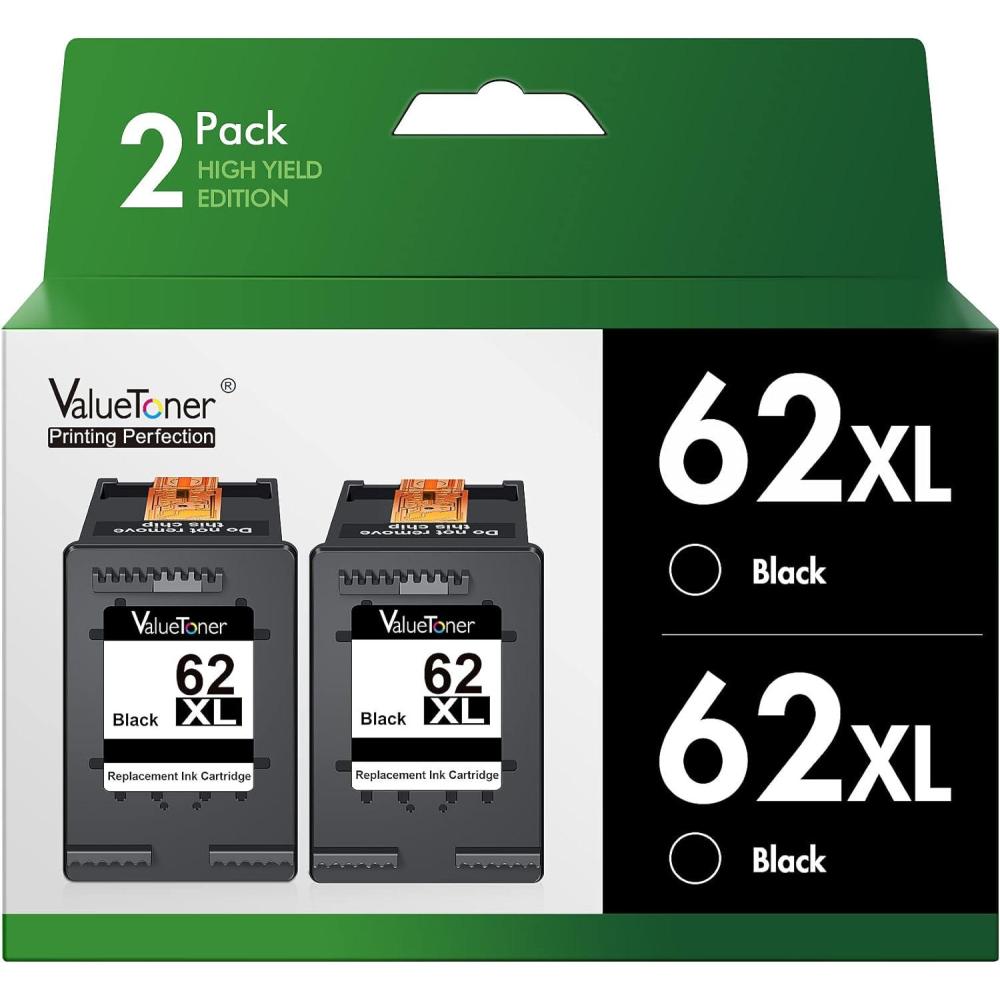 Contents: 2 Pack of 62XL Ink Remanufactured for HP Ink 62 for HP 62XL Black Ink High Yield
