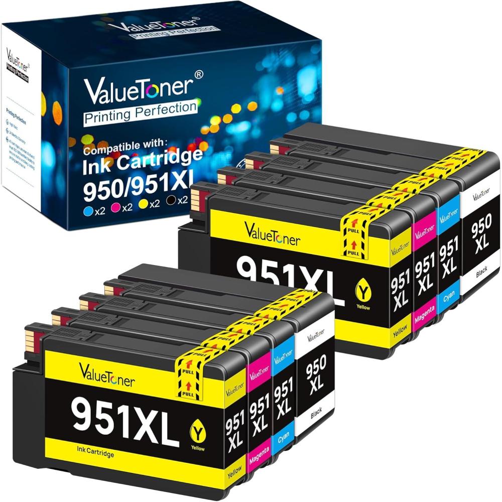 Product Name: Valuetoner 8-Pack 950xl and 951xl ink cartridges combo pack compatible for hp 950 951 ink cartridges combo pack xl with upgraded chip