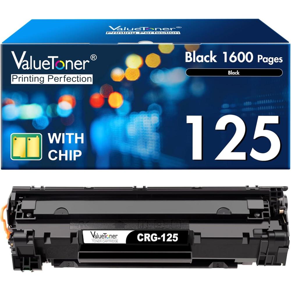 Contents: 1 Pack of compatible Toner cartridges Replacement for Canon 125 Black Toner Cartridge CRG-125
