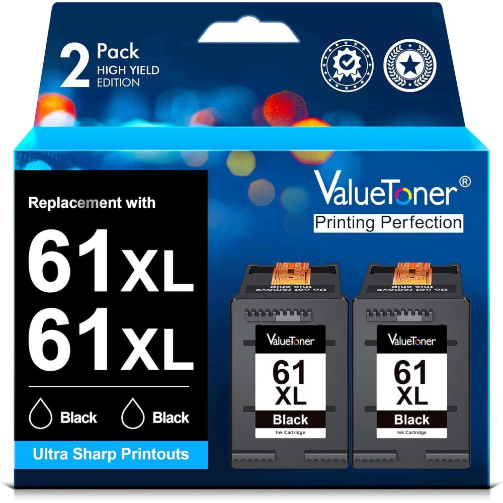 Contents: 2 Pack of remanufactured ink cartridge replacement for HP 61XL ink cartridges for HP printers