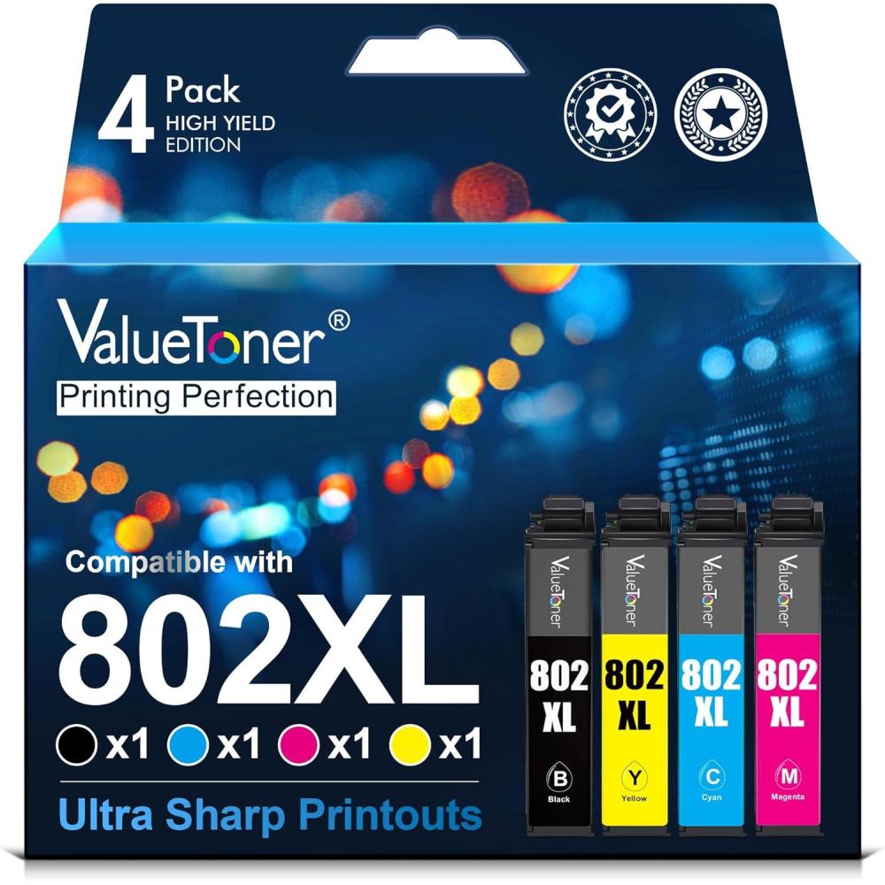 Contents: 4 Pack of Remanufactured Ink Cartridges Replacement for 802xl ink cartridges for high capacity epson 802 ink cartridges.