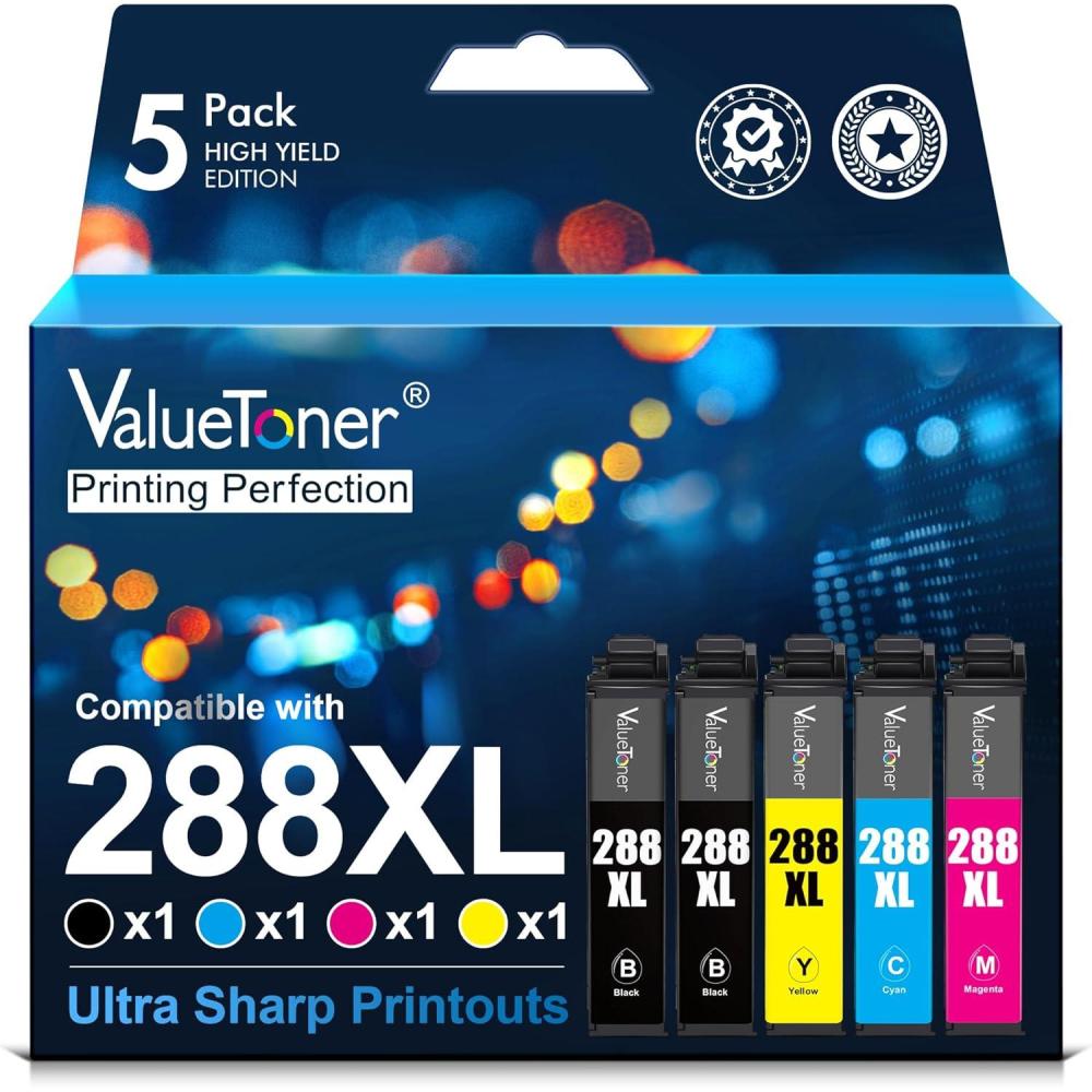Contents: 5 Pack of Remanufactured Ink Cartridge Replacement for Epson 288 XL 288XL T288XL Ink Cartridges (2 Black, 1 Cyan, 1 Magenta, 1 Yellow)