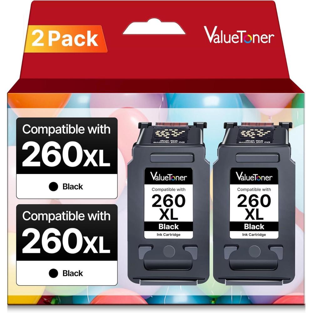 imageValuetoner Remanufactured Ink Cartridges Replacement for HP 67XL Black Ink Cartridge 67 XL for DeskJet 2855e 2827e 1255 2755 2755e 4155e Envy 6055 6055e 6052 6058 6075 6455 6455e 6452 6458 2Blackfor canon 260 black ink xl