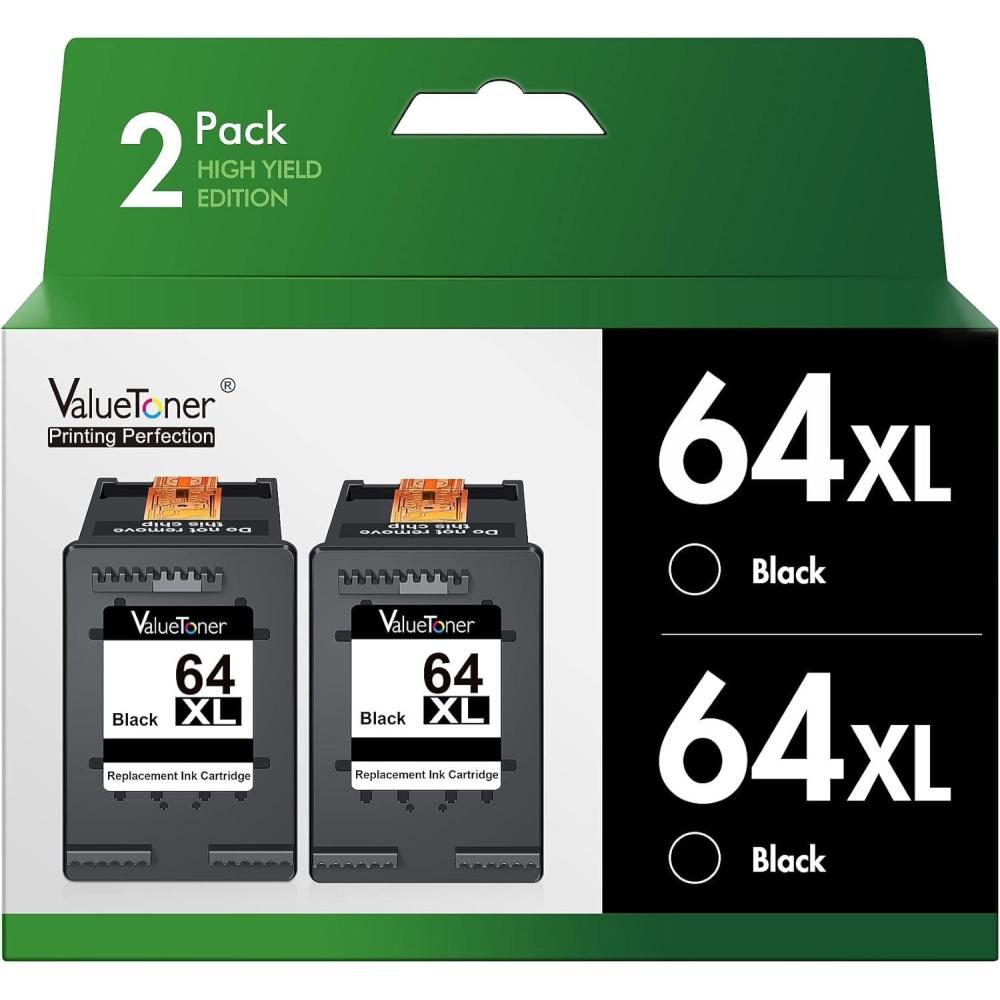 Package Included: 2 Pack of remanufactured cartridges for HP 64XL black ink cartridge (2 Black)
